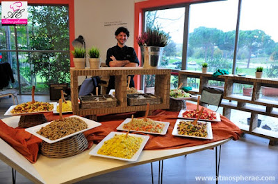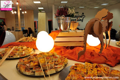 I colori dell’allestimento perfettamente in linea con quelli dell’azienda, un ricco buffet con ampia scelta di finger food, insalate di pasta fredda e profumatissimi angoli rustici con deliziosi affettati e formaggi, un fornitissimo open bar sempre a disposizione degli ospiti per regalare una gustosa pausa di relax, hanno saputo rendere ancora più preziose queste fantastiche giornate.